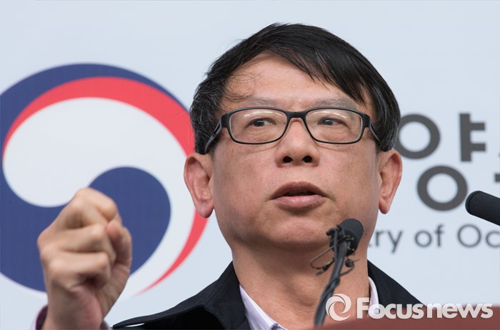 (세종=포커스뉴스) 왕웨이핑 세월호 인양 현장 총감독이 14일 오전 세종시 정부세종청사 해양수산부 기자실에서 세월호 인양 작업에 대해 설명하고 있다.