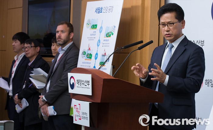 (세종=포커스뉴스) 연영진 세월호 인양추진단장이 14일 오전 세종시 정부세종청사 해양수산부 기자실에서 세월호 인양 작업에 대해 설명하고 있다.