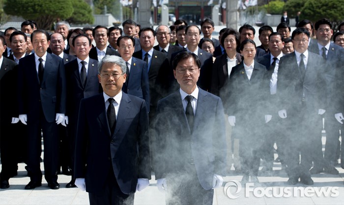 (광주=포커스뉴스) 14일 오후 광주 북구 국립5.18민주묘지에서 천정배 국민의당 공동대표를 비롯한 광주 지역 당선자들이 참배를 하고 있다.