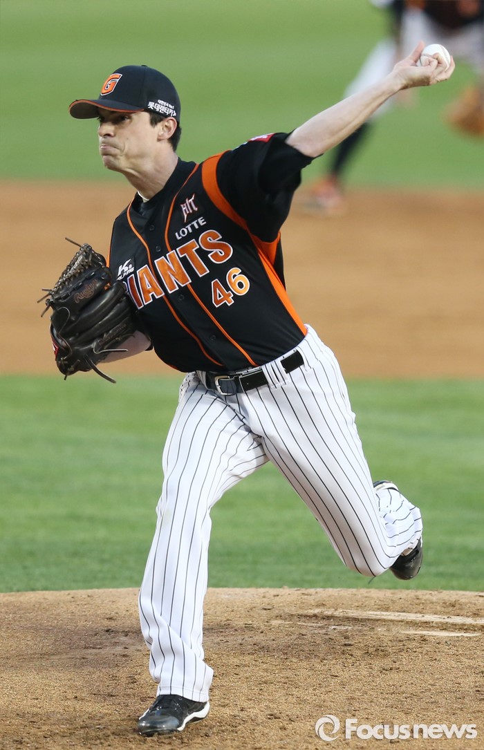 (서울=포커스뉴스) 14일 서울 잠실구장에서 열린 2016 프로야구 롯데-LG 경기에서 1회말 롯데 선발투수 레일리가 투구하고 있다.