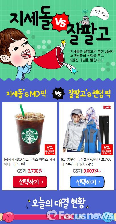 모바일 GS샵은 18일까지 이벤트 페이지에서 ‘지세돌 MD VS 잘팔고’ 이벤트를 한다고 15일 밝혔다.