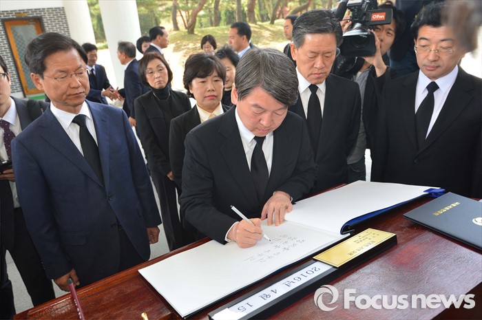 (서울=포커스뉴스) 안철수 국민의당 상임공동대표가 15일 오전 동작구 국립서울현충원에서 현충탑 참배를 마친 뒤 방명록을 작성하고 있다.