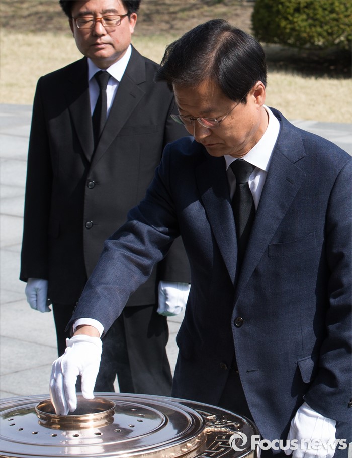 (서울=포커스뉴스) 15일 오전 서울 동작구 국립서울현충원 내 현충탑을 찾은 천정배 국민의당 상임공동대표가 분향하고 있다.