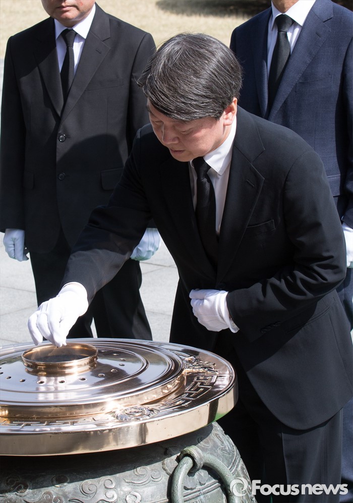 (서울=포커스뉴스) 15일 오전 서울 동작구 국립서울현충원 내 현충탑을 찾은 안철수 국민의당 상임공동대표가 분향하고 있다.