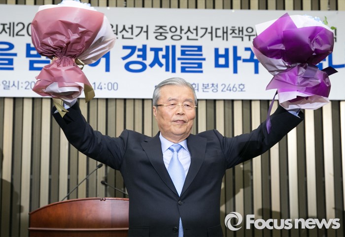 (서울=포커스뉴스) 김종인 더불어민주당 비대위 대표 겸 선대위원장이 15일 오후 서울 여의도 국회에서 열린 20대 총선 중앙선대위 해단식에 참석해 당직자들로부터 받은 꽃다발을 들고 포즈를 취하고 있다.