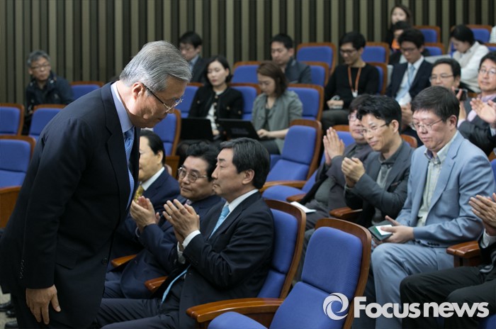 (서울=포커스뉴스) 김종인 더불어민주당 비대위 대표 겸 선대위원장이 15일 오후 서울 여의도 국회에서 열린 20대 총선 중앙선대위 해단식에 참석해 인사하고 있다.