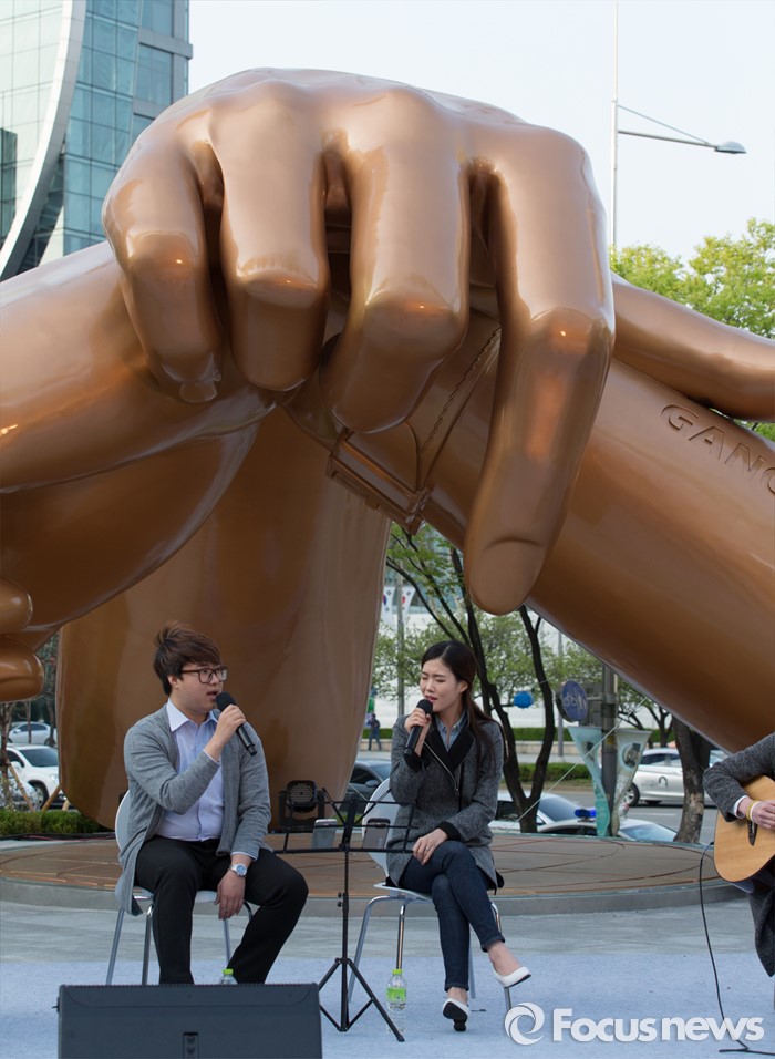 (서울=포커스뉴스) 15일 오후 서울 강남구 삼성동 코엑스 동측 광장 앞에서 강남스타일 랜드마크 조형물 준공 기념 제막식에 앞서 식전행사가 열리고 있다.