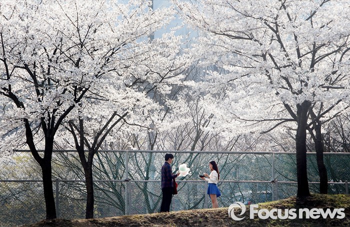 (서울=포커스뉴스) 15일 경기 용인시 명지대학교 자연캠퍼스 내 벚나무 아래에서 학생들이 봄을 즐기고 있다. <사진제공=명지대학교>