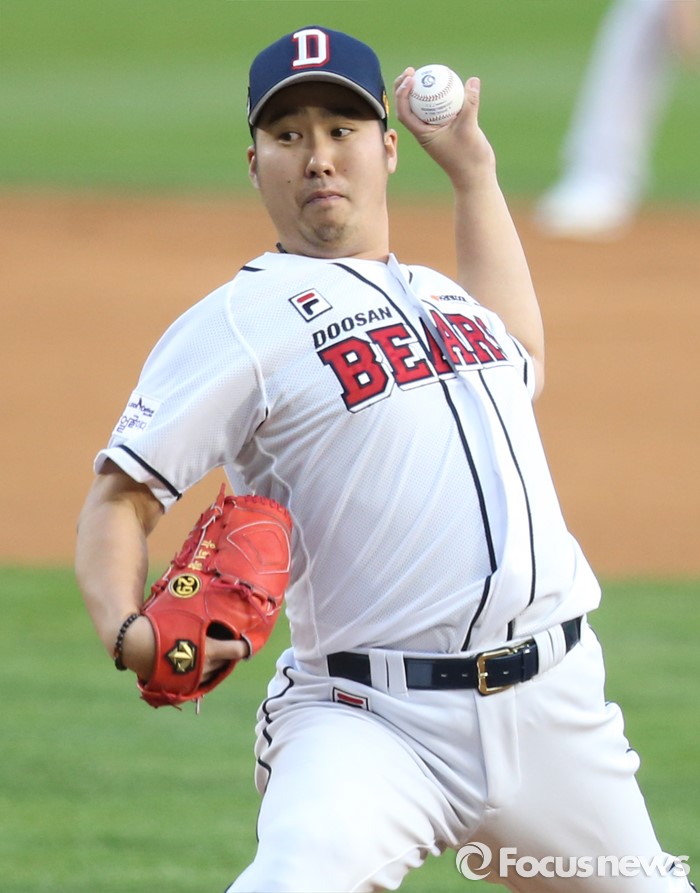 (서울=포커스뉴스) 15일 서울 잠실구장에서 열린 2016 프로야구 삼성-두산 경기에서 1회초 두산 선발투수 유희관이 투구하고 있다.