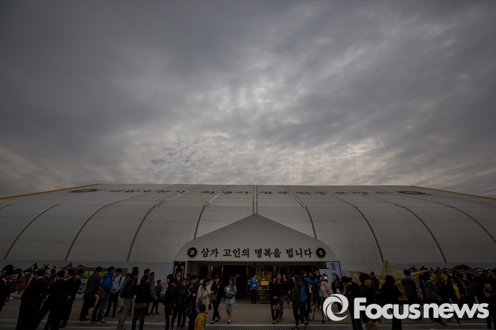 (안산=포커스뉴스) 세월호 참사 2주기인 16일 오전 경기도 안산시 단원구 화랑유원지에 마련된 합동분향소에 추모객 발길이 이어지고 있다.
