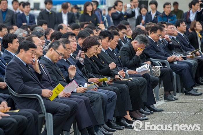 (안산=포커스뉴스) 16일 오전 경기도 안산시 단원구 화랑유원지에 마련된 합동분향소에서 열린 '세월호 참사 2년 기억식'에 여야 정치인 및 이번 20대 국회의원선거 경기지역 당선자들이 참석 하고 있다.