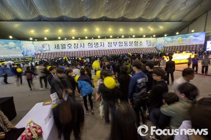 (안산=포커스뉴스) 세월호 참사 2주기인 16일 오전 경기도 안산시 단원구 화랑유원지에 마련된 합동분향소에 추모객 발길이 이어지고 있다.
