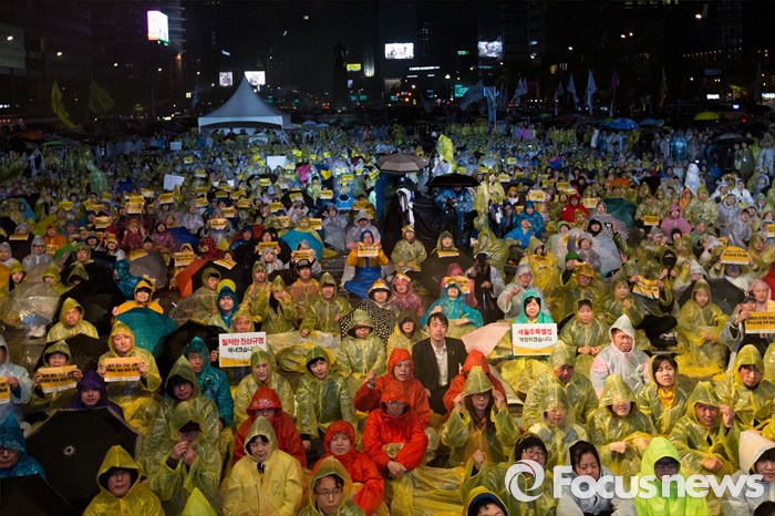 (서울=포커스뉴스) 16일 오후 서울 종로구 광화문 광장에서 열린 '세월호 참사 2주기 전국집중 범국민 추모문화제'에 참가한 유가족 및 시민들이 세월호 진상규명을 촉구 하고 있다.
