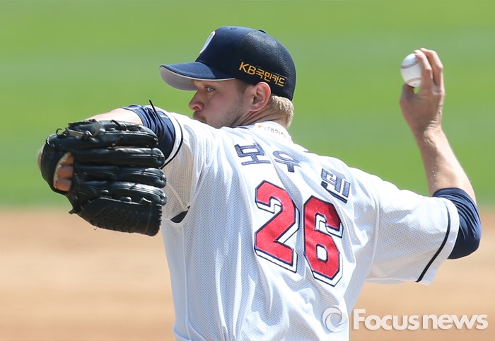 (서울=포커스뉴스) 17일 서울 잠실구장에서 열린 2016 프로야구 삼성-두산 경기에서 1회초 두산 선발투수 보우덴이 투구하고 있다.
