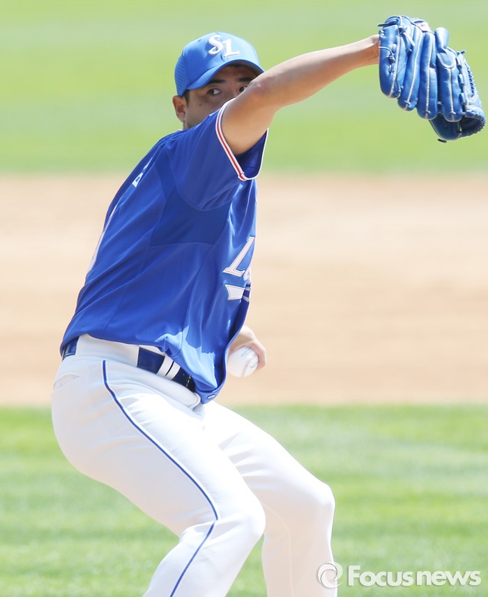 (서울=포커스뉴스) 17일 서울 잠실구장에서 열린 2016 프로야구 삼성-두산 경기에서 1회말 삼성 선발투수 장원삼이 투구하고 있다.