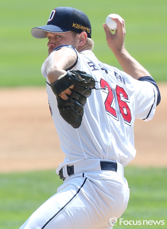 (서울=포커스뉴스) 17일 서울 잠실구장에서 열린 2016 프로야구 삼성-두산 경기에서 1회초 두산 선발투수 보우덴이 투구하고 있다.