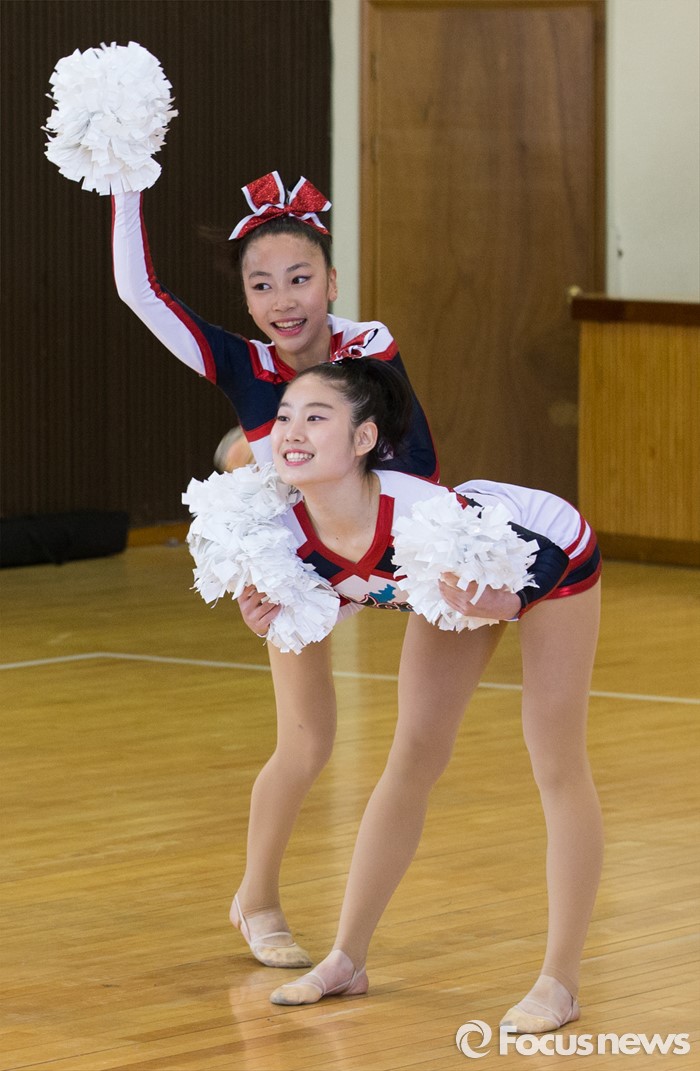 (서울=포커스뉴스) 17일 오후 서울 서대문구 동명여자중학교 체육관에서 열린 '2016 치어리딩 국가대표 선수단 출정식'에 참석한 선수들이 치어리딩 연기를 선보이고 있다.