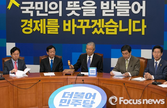(서울=포커스뉴스) 김종인(왼쪽 세번째) 더불어민주당 비대위 대표가 18일 오전 서울 여의도 국회에서 비상대책위원회의에 참석해 개의 선언을 하고 있다.