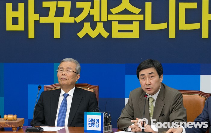 (서울=포커스뉴스) 이종걸 더불어민주당 원내대표가 18일 오전 서울 여의도 국회에서 열린 비상대책위원회의에 참석해 발언하고 있다. 왼쪽은 김종인 비대위 대표.