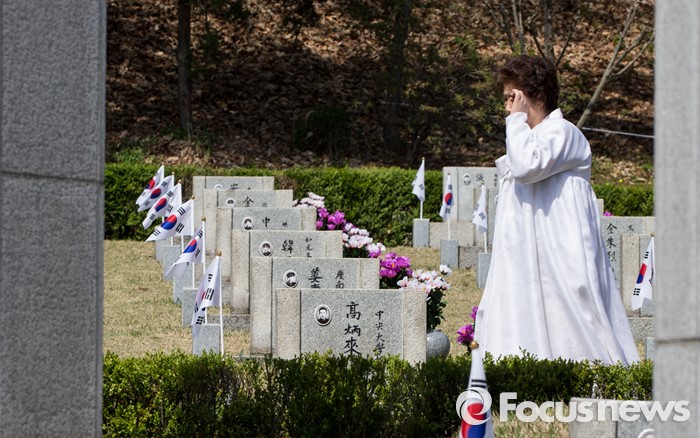 (서울=포커스뉴스) 4·19 혁명 56주기를 하루 앞둔 18일 오전 서울 강북구 국립4.19 민주묘지를 찾은 유가족들이 희생자의 묘소로 향하고 있다.