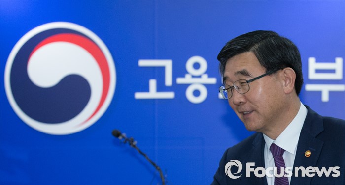 (세종=포커스뉴스) 이기권 고용노동부 장관이 18일 오전 세종시 정부세종청사 고용노동부 기자실에서 일자리 확대와 격차해소 방안을 발표하기 위해 브리핑장으로 입장하고 있다.
