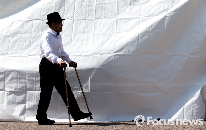 (서울=포커스뉴스) 18일 오전 서울 영등포구 여의도공원에서 함께서울 누리축제에 참가한 한 장애인이 예술공연을 위해 무대에 오르고 있다.