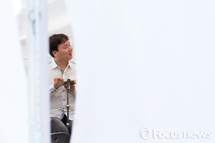 (서울=포커스뉴스) 18일 오전 서울 영등포구 여의도공원에서 함께서울 누리축제에 참가한 한 장애인이 예술공연을 준비하고 있다.
