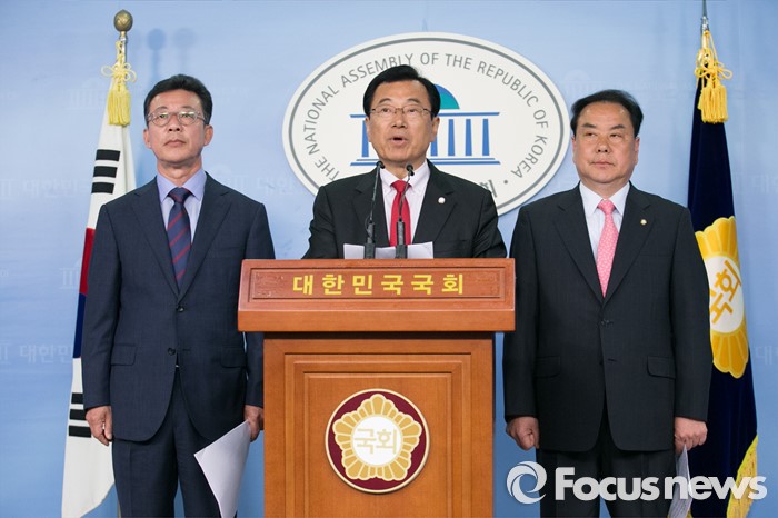 (서울=포커스뉴스) 20대 총선 수도권 지역에서 당선한 홍철호(경기 김포, 왼쪽부터), 이현재(경기 하남),이우현(경기 용인갑) 의원이 18일 오후 서울 여의도 국회 정론관에서 정쟁을 중단하고 민생경제를 살리자는 내용의 성명서를 발표하고 있다.
