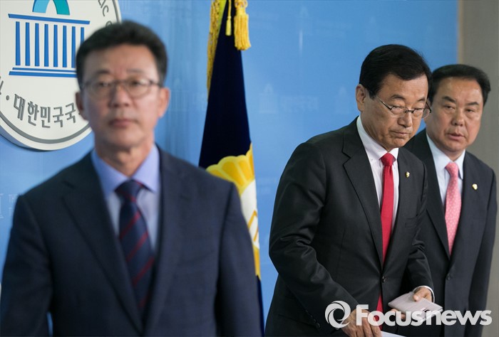 (서울=포커스뉴스) 20대 총선 수도권 지역에서 당선한 홍철호(경기 김포, 왼쪽부터), 이현재(경기 하남),이우현(경기 용인갑) 의원이 18일 오후 서울 여의도 국회 정론관에서 정쟁을 중단하고 민생경제를 살리자는 내용의 성명서를 발표한 뒤 퇴장하고 있다.