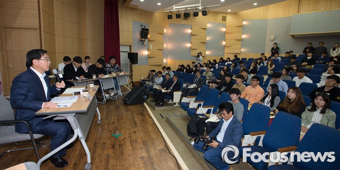 (대전=포커스뉴스) 이기권 고용노동부장관이 대전 유성구 충남대학교를 방문, 대학생들과 함께 찾아가는 정책설명회 및 토크콘서트를 하고 있다.
