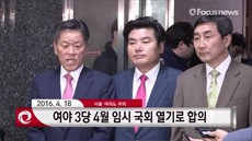 이들은 비공개 회동 이후 국회의장실에서 나온 주 원내대표는 기자들에게 "오늘 회의 결과, 4월 20일부터 5월 20일까지 19대 국회 마지막 임시회를 열기로 합의했다"고 밝혔다.