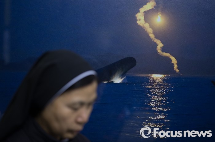 (서울=포커스튜스) 세월호 참사 2주기가 이틀 지난 18일 오후 서울 종로구 광화문광장에서 한 신부가 '세월호 희생자 기억미사'에 참석해 기도하고 있다.