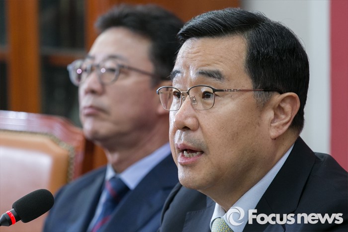 (서울=포커스뉴스) 김정훈 새누리당 정책위의장이 19일 오전 서울 여의도 국회에서 열린 원내대표단회의에 참석해 발언하고 있다.