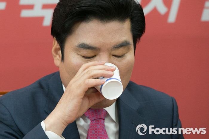 (서울=포커스뉴스) 원유철 새누리당 원내대표가 19일 오전 서울 여의도 국회에서 열린 원내대표단회의에 참석해, 물을 마시고 있다.