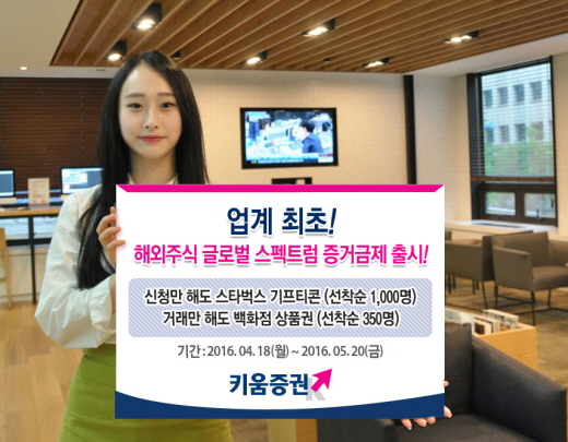 키움증권은 글로벌 스펙트럼 증거금제를 처음으로 신청하는 고객 선착순 1000명에게 스타벅스 기프티콘을 증정한다.