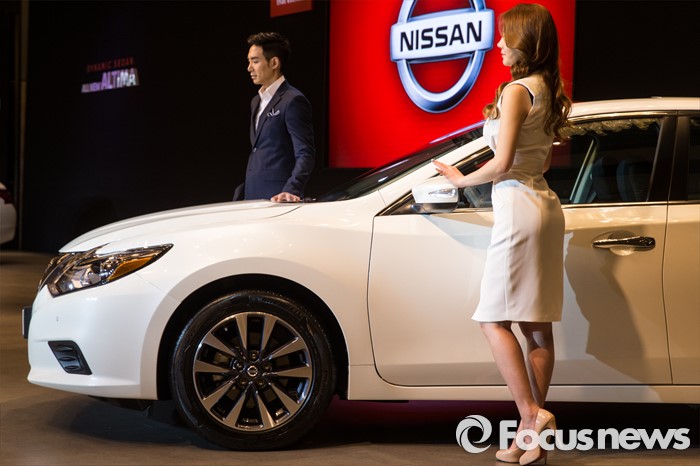 (서울=포커스뉴스) 19일 오전 서울 종로구 포시즌스호텔서울에서 열린 닛산 'ALL NEW ALTIMA' 미디어 포토세션에 참여한 모델들이 신차앞에서 포즈를 취하고 있다.