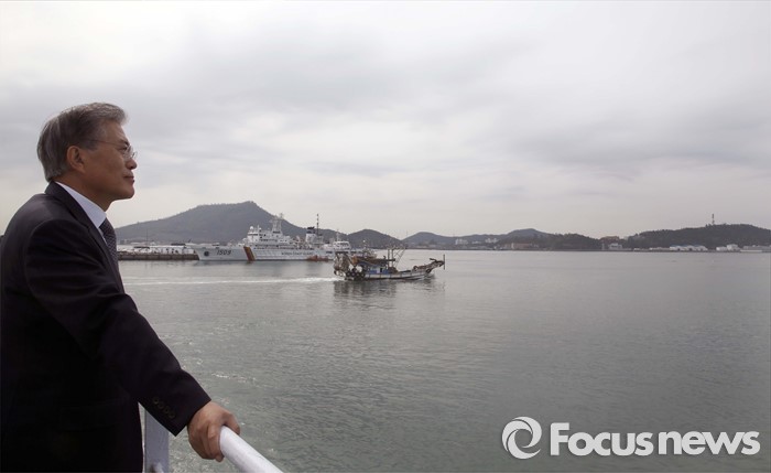 (서울=포커스뉴스) 문재인 전 더불어민주당대표가 18일전남 신안 하의도에 있는 김 전 대통령의 생가를 방문하기위해 배편으로 하의도에 가고 있다.<사진제공=문재인의원실>