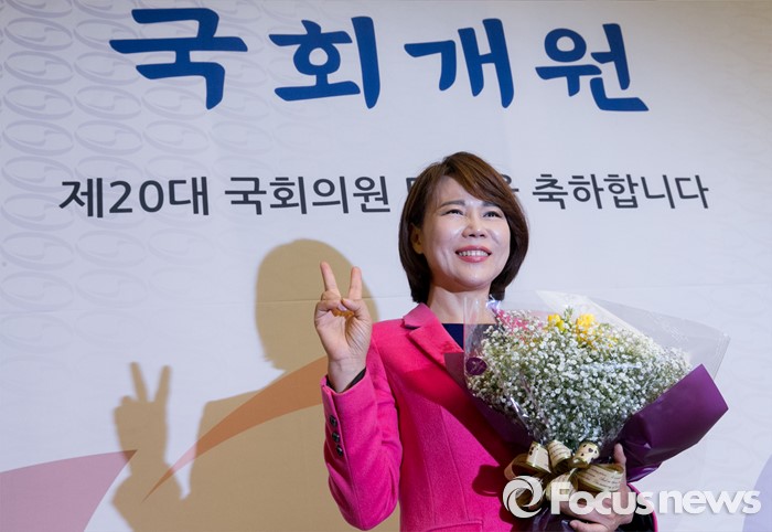 (서울=포커스뉴스) 19일 오후 서울 여의도 국회 본청에 마련된 20대 국회 개원종합지원실에서 전현희 더불어민주당 강남을 당선인이 의원등록을 마친 뒤 취재진을 향해 포즈를 취하고 있다.