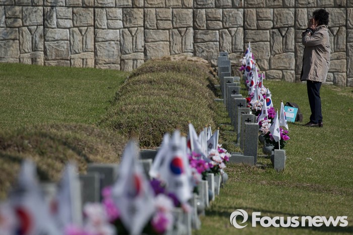 (서울=포커스뉴스) 4.19혁명 56주기를 맞는 19일 오전 서울 강북구 국립4.19 민주묘지를 찾은 유가족들이 참배하고 있다.