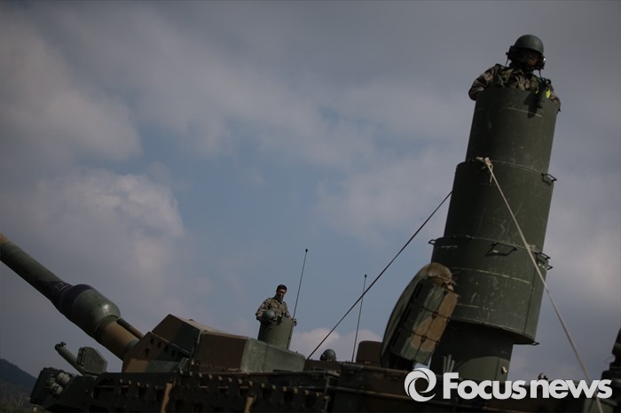(여주=포커스뉴스) 19일 오전 경기도 여주시 남한강 일대에서 육군 20사단이 K-2 흑표전차 잠수도하훈련을 하고 있다.