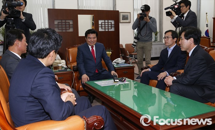 (서울=포커스뉴스) 원유철 새누리당 원내대표가 19일 오후 서울 여의도 국회에서 원 원내대표의 비상대책위원회 체제에 반대 입장을 가진 의원 및 당선인으로 구성된 당 혁신모임(가칭) 소속 의원들과 면담을 하고 있다.