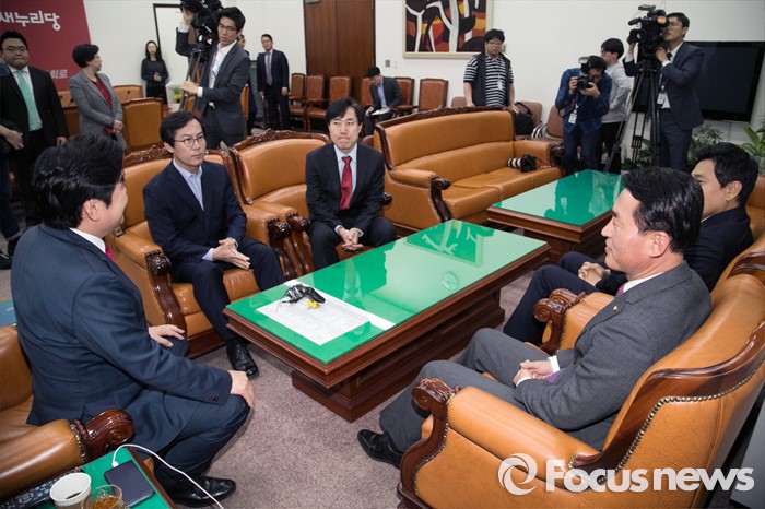 (서울=포커스뉴스) 원유철 새누리당 원내대표가 19일 오후 서울 여의도 국회에서 원 원내대표의 비상대책위원회 체제에 반대 입장을 가진 의원 및 당선인으로 구성된 당 혁신모임(가칭) 소속 의원들과 면담하고 있다.