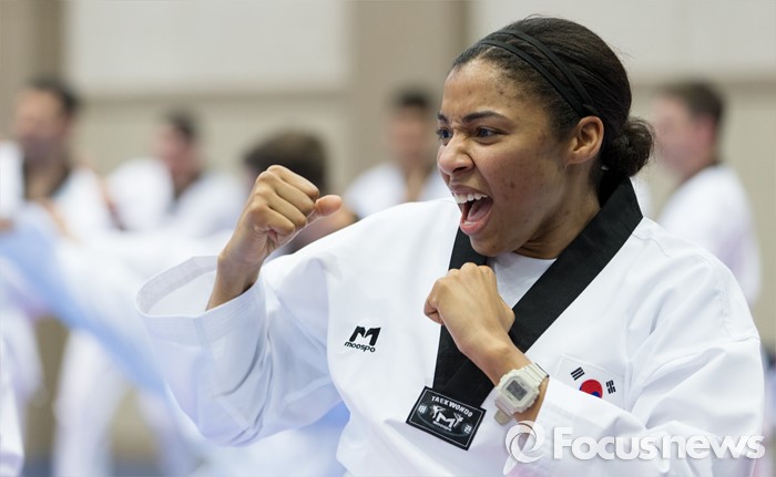 (서울=포커스뉴스) 19일 오후 서울 용산구 국방부 다목적홀에서 한국문화 체험행사에 참가한 주한미군 장병들이 태권도를 배우고 있다.