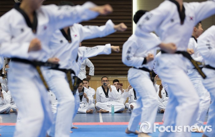 (서울=포커스뉴스) 19일 오후 서울 용산구 국방부 다목적홀에서 한국문화 체험행사에 참가한 주한미군 장병들이 국방부 태권도 시범단을 촬영하고 있다.