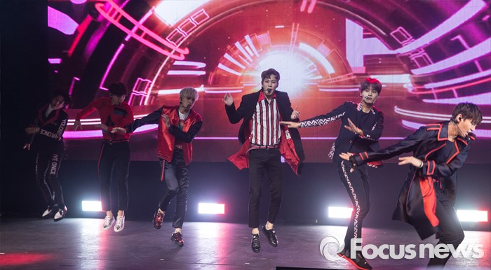홀서울=포커스뉴스) 19일 오후 서울 마포구 롯데카드 아트센터에서 열린 아이돌그룹 VIXX의 싱글앨범 'Zelos' 발표 쇼케이스에 참여한 멤버들이 신곡 '다이너마이트'의 무대를 선보이고 있다.
