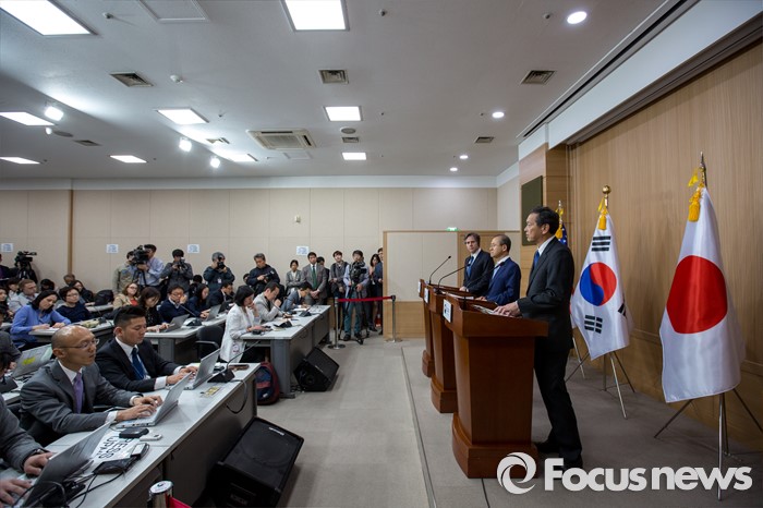 (서울=포커스뉴스) 사이키 아키타카 일본 외무성 사무차관이 19일 오후 서울 종로구 외교부에서 '제3차 한미일 외교차관 협의회' 결과 발표를 하고 있다.
