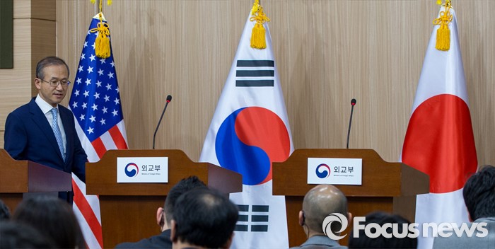 (서울=포커스뉴스) 임성남 외교부 제1차관이 19일 오후 서울 종로구 외교부에서 '제3차 한미일 외교차관 협의회' 결과 발표를 하기 위해 브리핑실로 들어서고 있다.