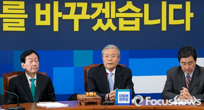 (서울=포커스뉴스) 김종인(가운데)더불어민주당 비대위 대표가 20일 오전 서울 여의도 국회에서 열린 비상대책위원회의에 참석해 모두발언을 하고 있다.