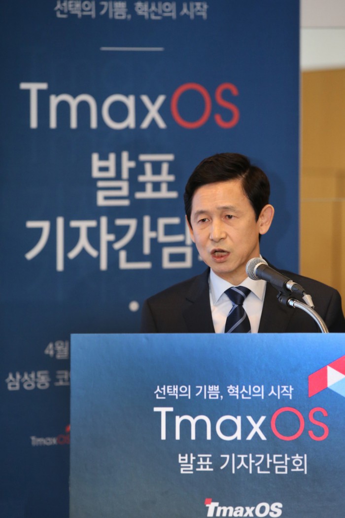 한편 티맥스의 OS 개발은 경영악화로 개발이 중단된 티맥스 윈도 이후 7년만이다. 티맥스는 2009년 개인용PC OS인 티맥스 윈도를 공개했으나 실패한 바 있다. 당시 티맥스 윈도 개발을 담당했던 티맥스코어 인력 200여명은 삼성SDS로 넘어갔다.티맥스오에스 박학래 대표 <사진제공=티맥스>