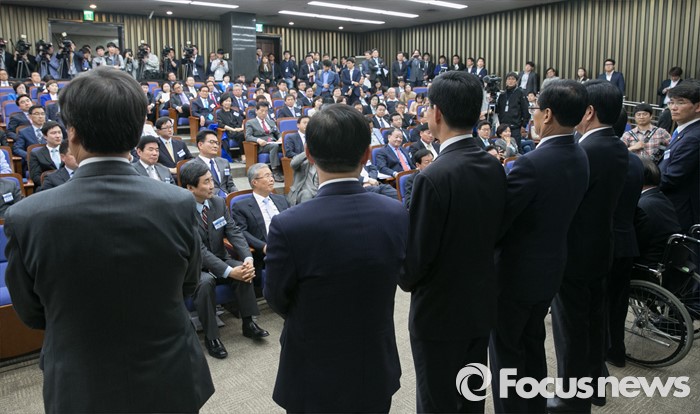(서울=포커스뉴스) 20일 오전 서울 여의도 국회에서 열린 더불어민주당 20대 총선 당선자 대회에 참석한 김종인 비대위 대표 등 당선인들이 대전 및 충청 지역 당선인들의 인사말을 듣고 있다.